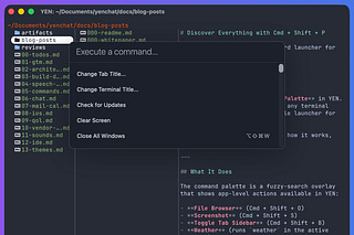 A unified keyboard launcher for every feature in YEN with CMD + Shift + P.