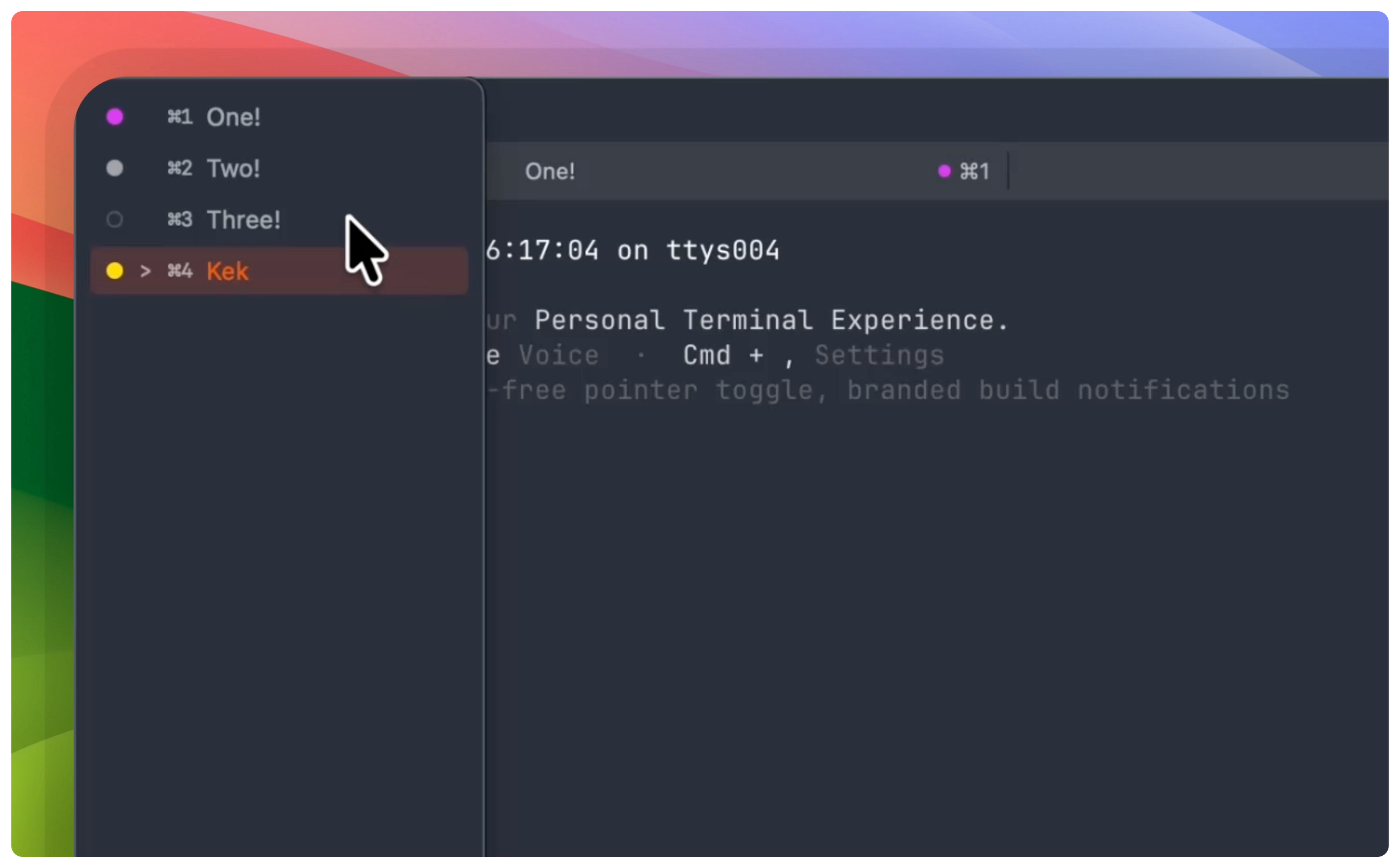In addition, macOS tab bars are small. The titles truncate. You can’t tell ~/projects/yen-mail apart from ~/projects/yen-terminal when both say ~/project…