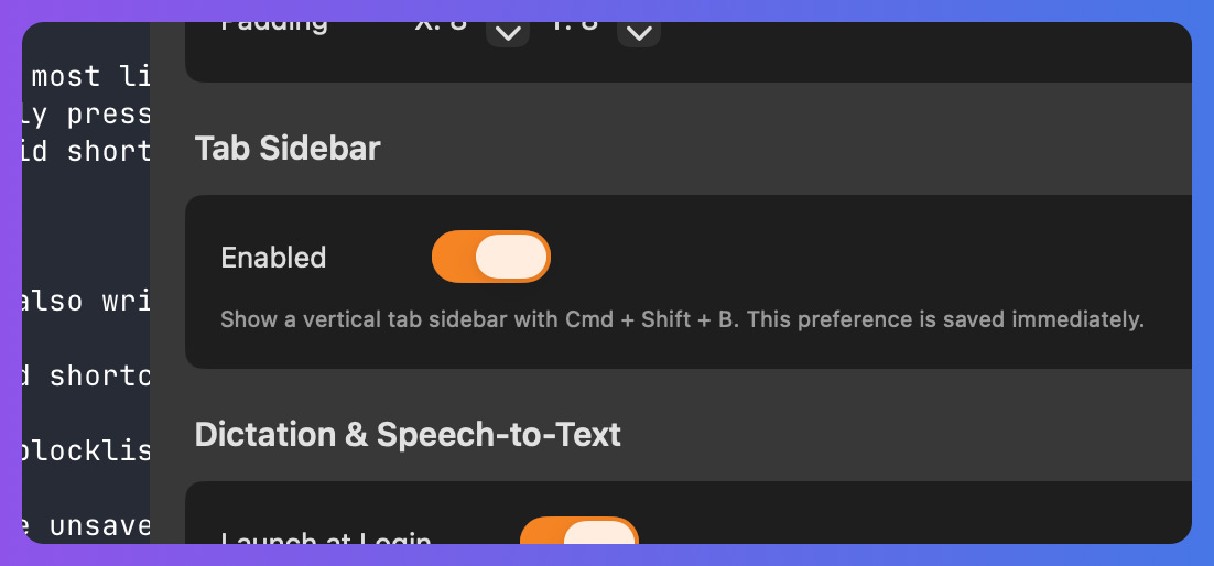 The sidebar doesn’t replace your keyboard workflow — it augments it. If you never touch Cmd + Shift + B (and Escape to close it) nothing changes. Your existing shortcuts keep working exactly as before.